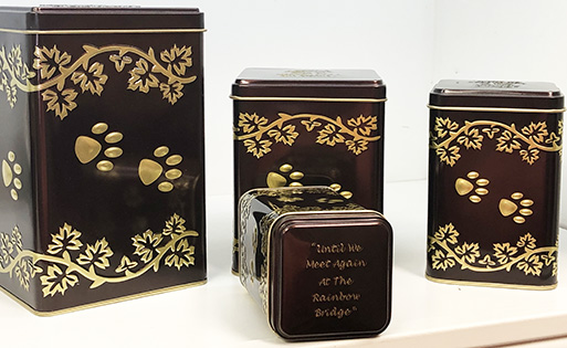 This pet urn is beautifully crafted in solid brass with a pewter finish and a Paw Print is embossed in the top lid.