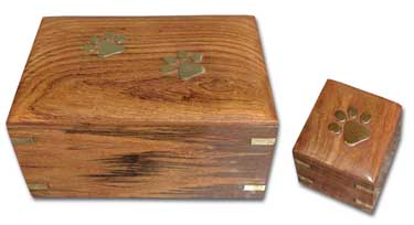 Wood Urn with Gold Paw prints