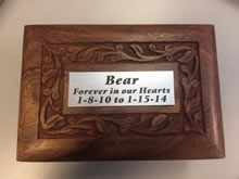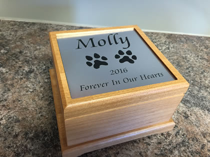 A simple and elegant cremation urn to memorialize your faithful friend. Made of solid red alder wood and laser engraved.